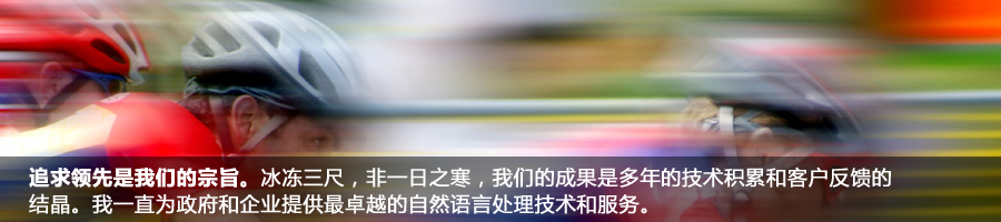 自從成立以來,我們?yōu)榭蛻籼峁└咝Ш椭悄芑男畔⑻幚砉ぞ吆妥稍兎?wù)。在這個信息爆炸的時代,如何讓互聯(lián)網(wǎng)上和企業(yè)內(nèi)部的海量信息為我們帶來更多的價值需要高度智能化的信息處理工具。我們提供的技術(shù)能夠高效并且準確的對大量文本信息進行處理、檢索、挖掘、翻譯等工作,并可方便地與信息系統(tǒng)的其他模塊進行整合。